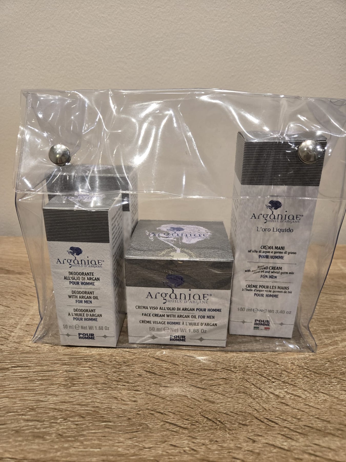 Pour répondre aux besoins des hommes et à leur recherche de bien-être, Arganiae a étudié le Kit Pour Homme : texture agréable qui s'absorbe immédiatement, légère et sans huile, principes actifs aux performances élevées, associés à des senteurs vitales et énergétiques pour une large gamme de produits extrêmement pratiques et efficaces. La ligne « Arganiae For Men » comprend Crème pour le visage, Sérum après-rasage, Crème pour les mains et Déodorant roll-on, des produits destinés aux types de peau les plus exigeants.